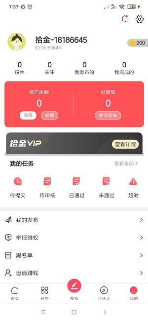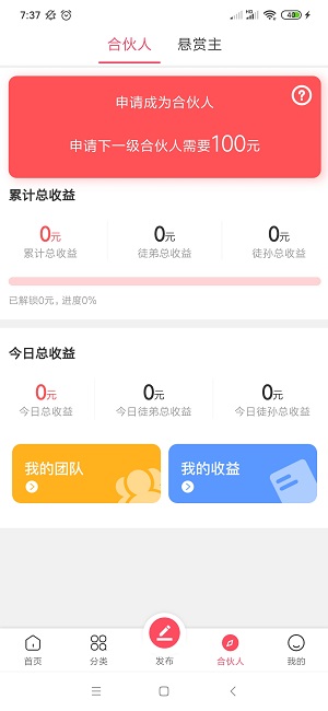 - 说 明:做悬赏任务赚钱,邀请好友享合伙人永久分红。