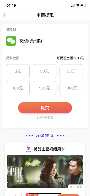 5.永久满8元起提现,每天限提现3次,提现金额实时秒到账微信。