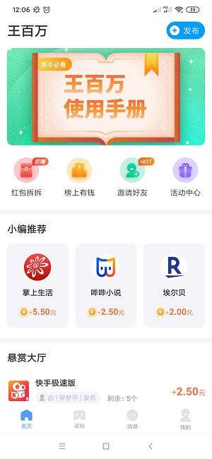 - 说 明:海量悬赏任务,做任务赚现金秒提现。