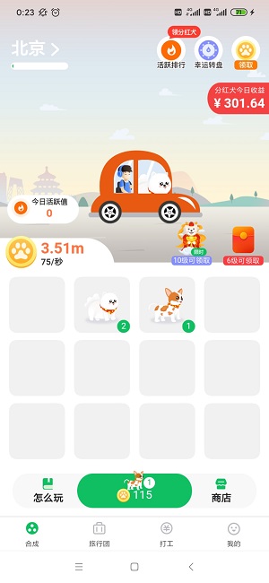 两只相同等级的狗拖动在一起,可以合并成更高级的狗,越高等级的狗产金币就越多。位置满的时候可以把狗狗拖动到回收处回收,可以获得金币。每升一级都可以获得随机红包奖励,最高100元,红包金额随机。每天收集活跃值,参与排行,可以获得分红犬,享受平台分红收益。